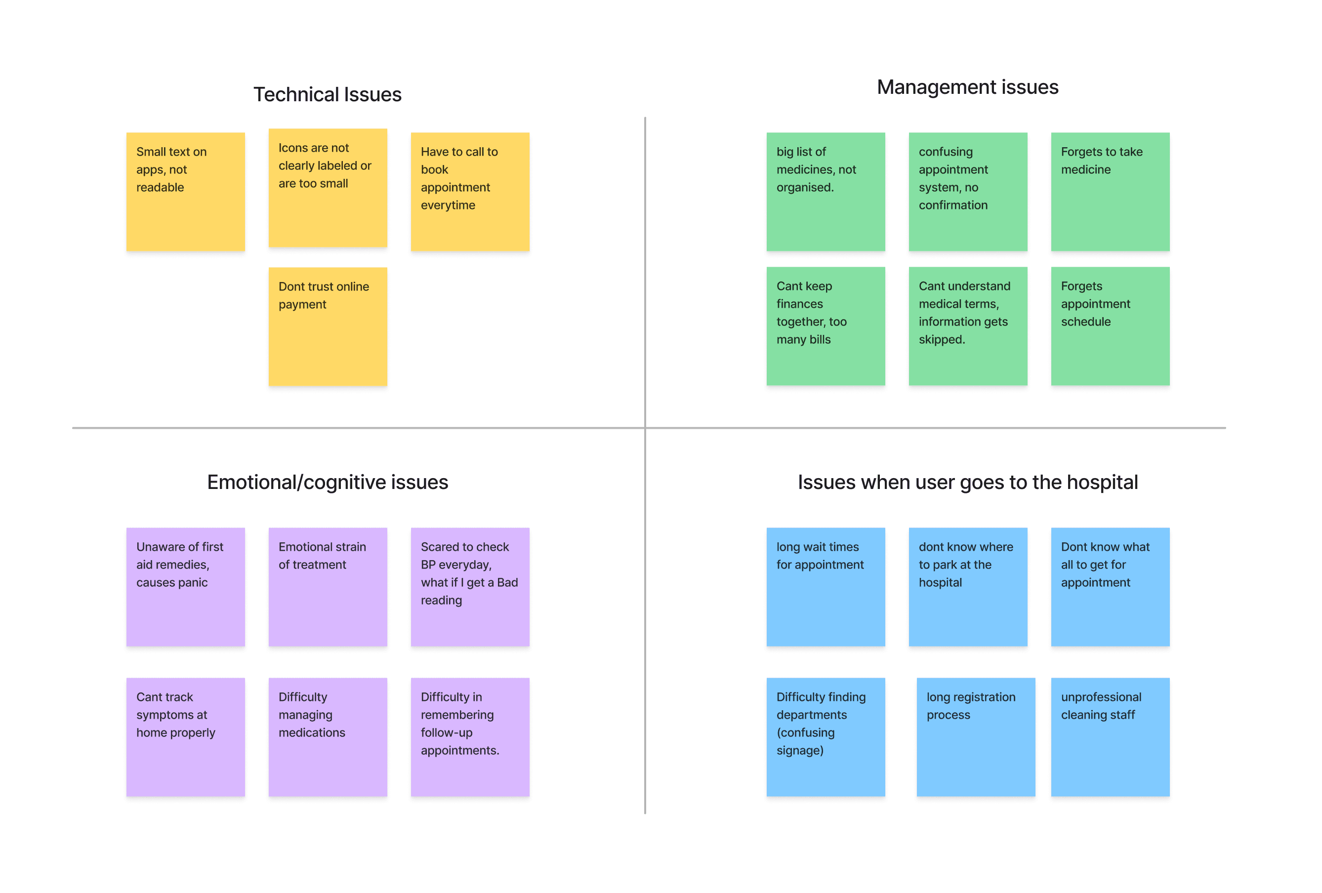 Based on the user interviews I sorted all the user problems into an affinity map and grouped them into 4 categories
