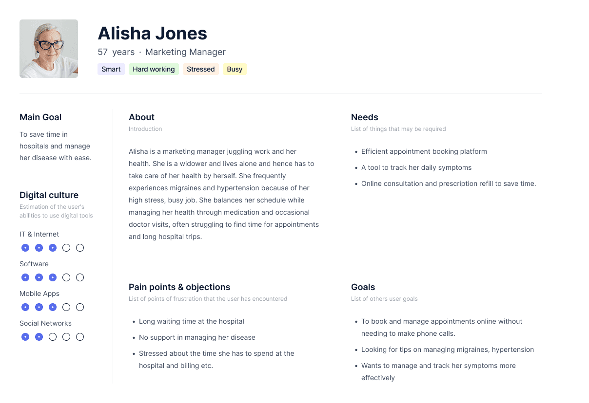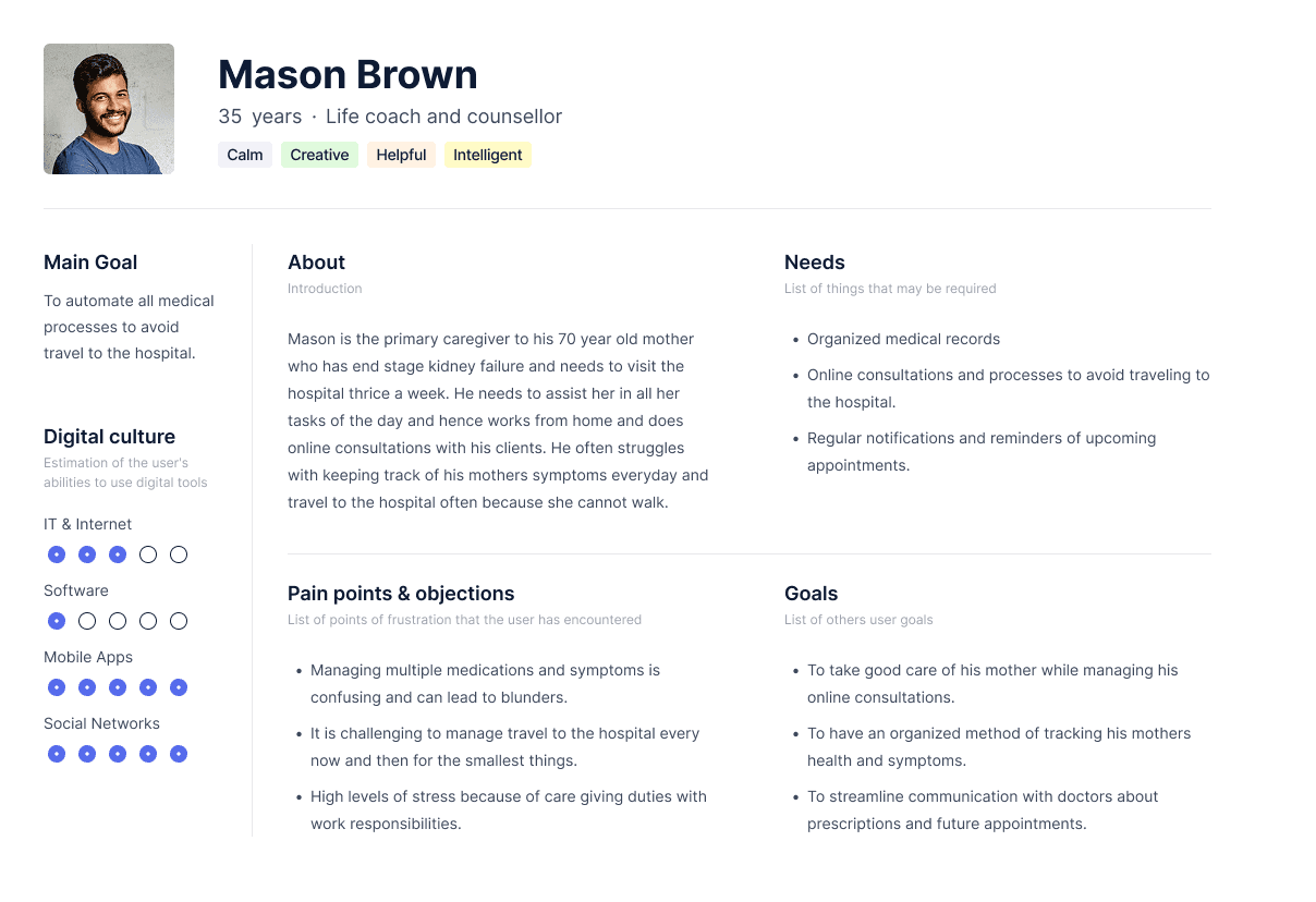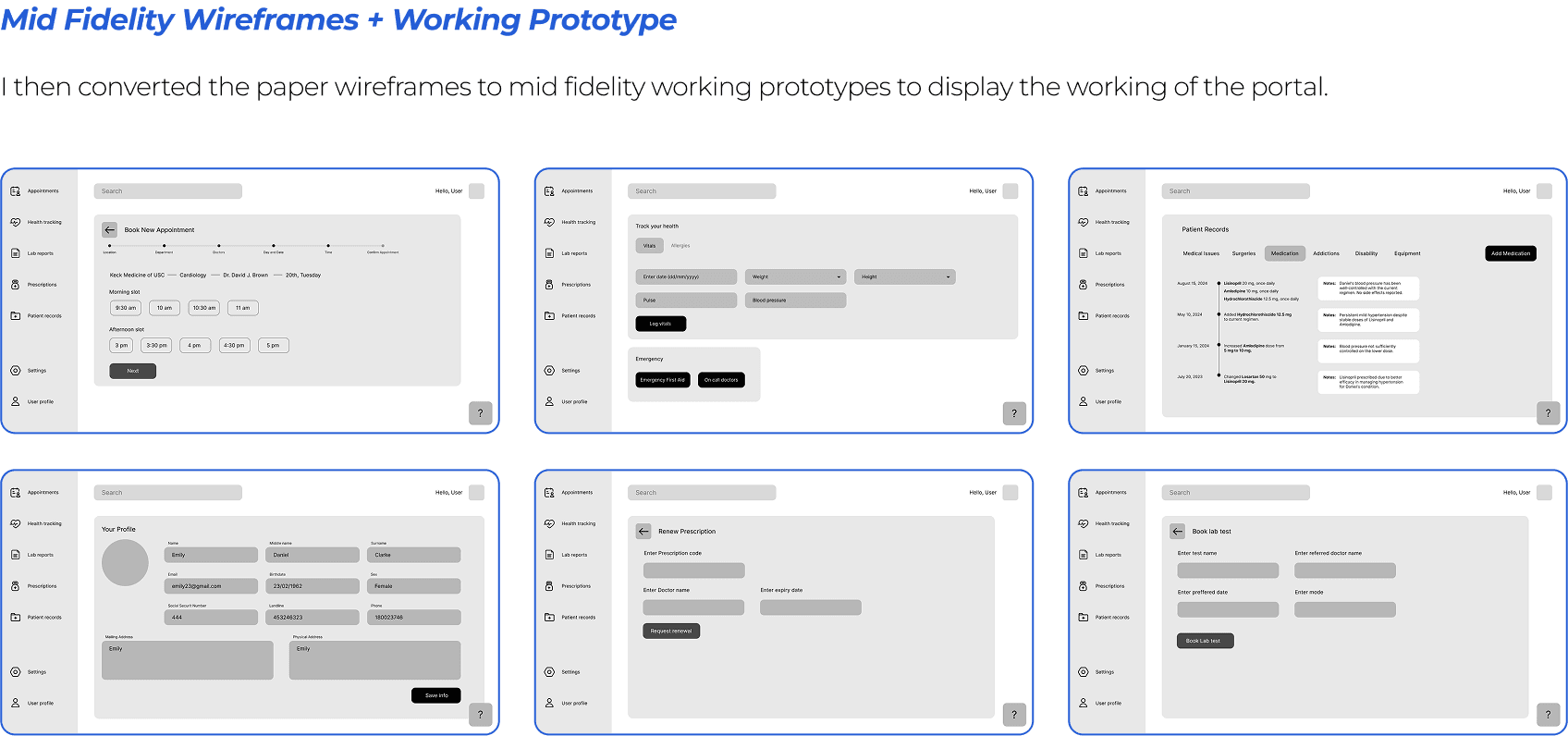 I narrowed my research down to two personas, one of a patient and one of a caregiver who can use the patient portal both being valid users of the portal, my main target audience was patients between the age group of late 40s to 70s and caregivers between the age group of 20s to 50s.
